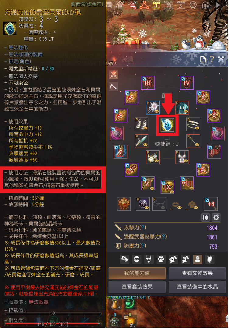 現在,你甚至可以將 煉金石與貝爾心臟(Vell’s Heart)進行合成,以獲得更強力的使用效果。